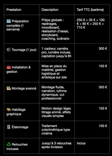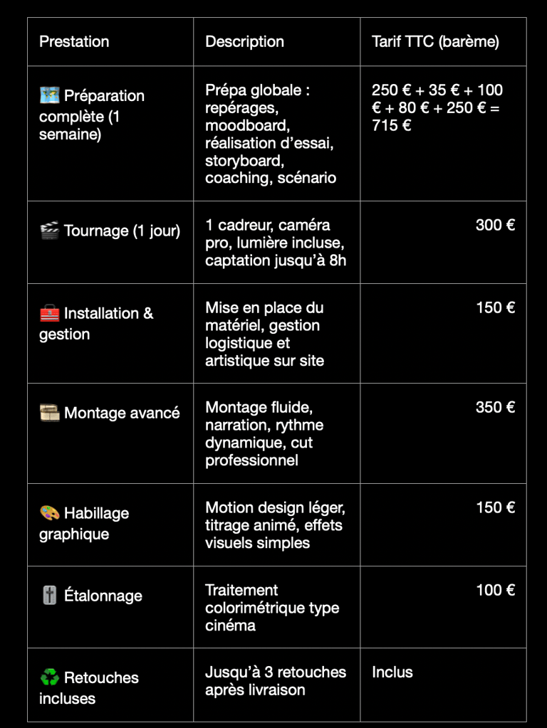 Ce pack est pensé pour celles et ceux qui veulent marquer les esprits avec une vidéo à l’esthétique soignée, préparée en profondeur et tournée avec un œil cinématographique.